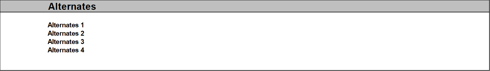 At last, list at the bottom of your spreadsheet any alternates. Alternates are “Design adjustments that are priced as separate additions or deletions to a base bid” (as per Alison Dykstra – Construction Project Management). These can be requested by the client but can also be alternates that you are proposing to the client.